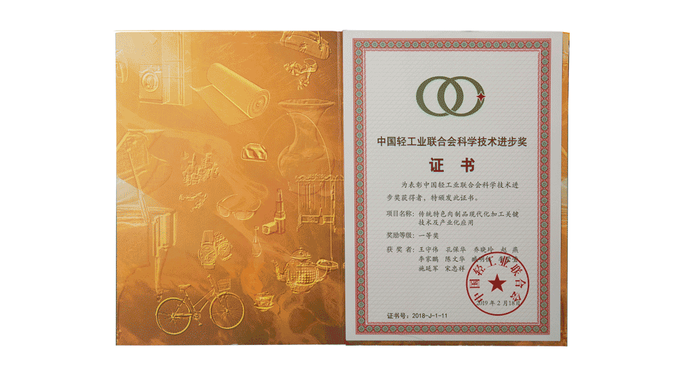 日前,中國輕工業聯合會對2018年度在科技發明及技術創新方面表現突出的企業及項目進行了表彰,由金字參與的“傳統特色肉制品現代化加工關鍵技術及產業化應用”項目經審定及批準,喜獲中國輕工業聯合會科技進步獎一等獎。