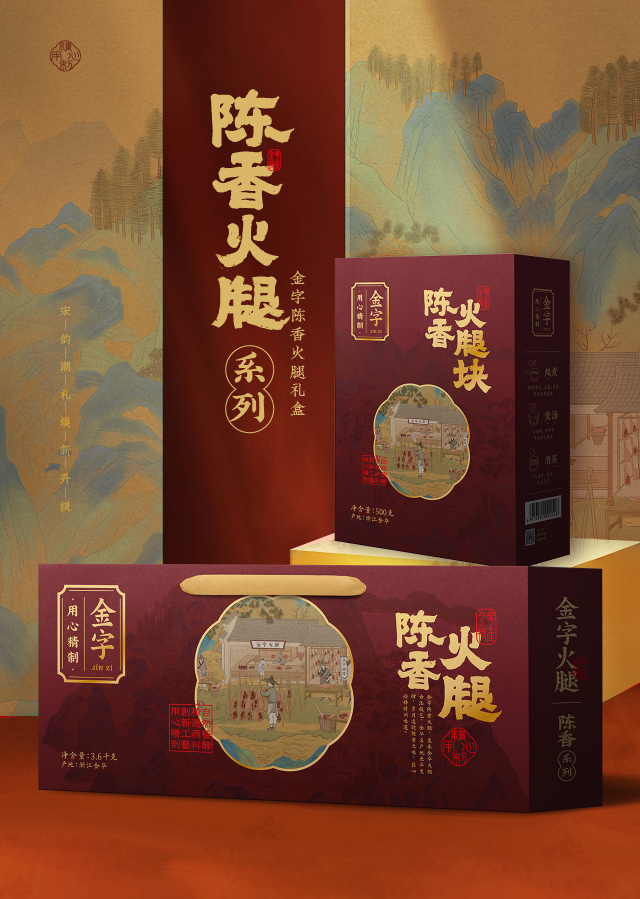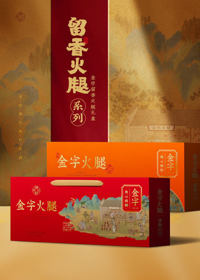 將火腿美食文化演繹出新國潮,“興于宋”的文化感、“宋之美”的價值感、“宋之韻”的精致感,煥新系列包裝最終呈現(xiàn)“宋”之有禮的全新理念。